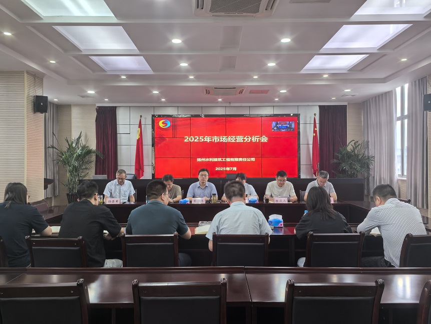 7月26日上午,揚州水利建筑工程有限責任公司召開2025年市場經營分析會,全面總結上半年市場經營工作,部署下半年工作計劃,公司班子成員、市場經營部全體人員參加會議。