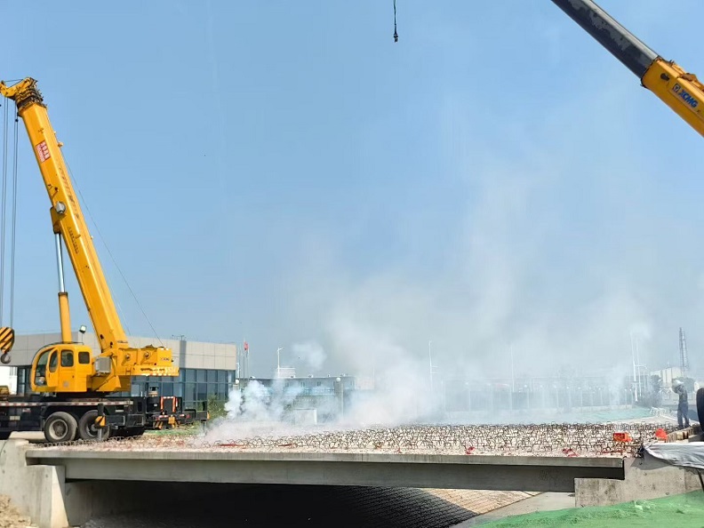 開發(fā)區(qū)西南片防洪除澇能力提升一期項目施工Ⅰ標首座橋梁梁板架設(shè)完成
